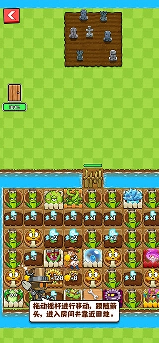 4、进入关卡后,需拖动屏幕中央的隐形轮盘来操控农夫角色进入农田,进行阳光的种植。