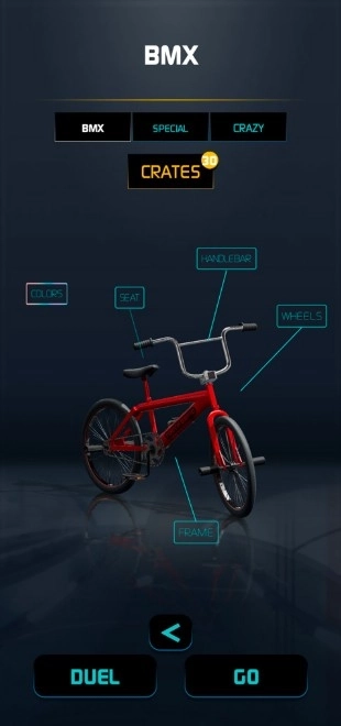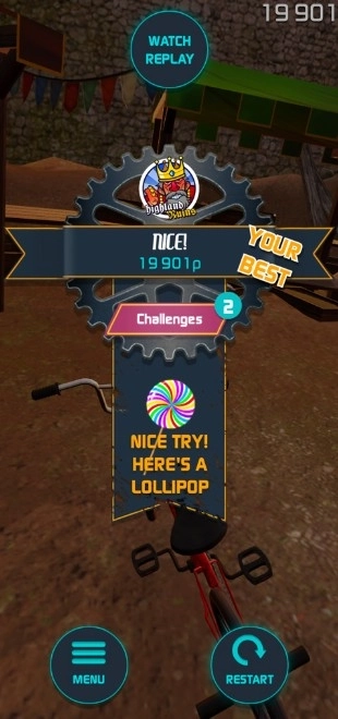 4、然后就可以正式的进入游戏了,我们需要用两根手指分别控制单车的前轮和后轮,以此来表演各种特技。