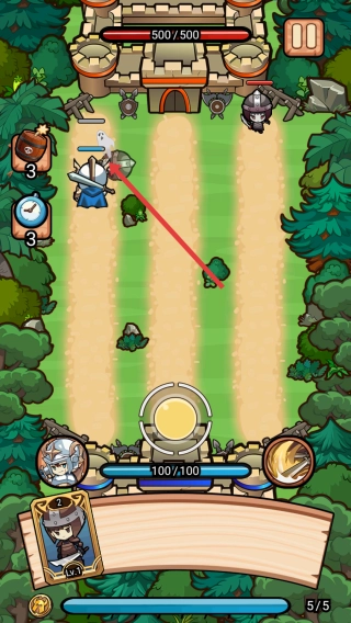 4、在战斗过程中,操控英雄与士兵于战场上展开行动,对敌方城堡发起攻击。与此同时,还要应对敌方派出的士兵,全力以赴击败敌人,从而夺取最终胜利。