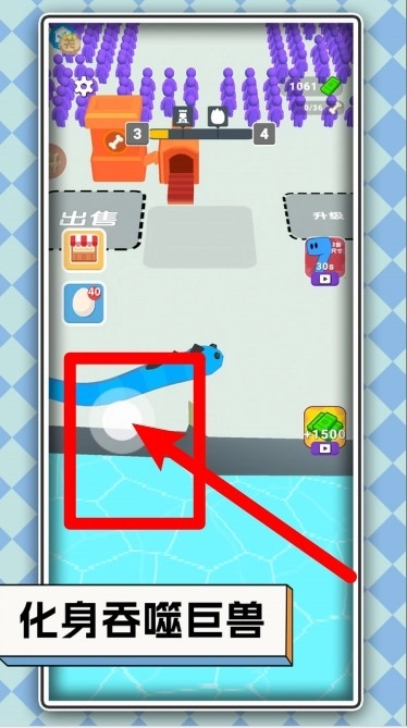 1.虚拟摇杆:屏幕左下角配备了虚拟摇杆,玩家只需滑动它就能控制巨蛇的移动方向,而灵活的走位正是吞噬敌人与存活下来的核心技巧。