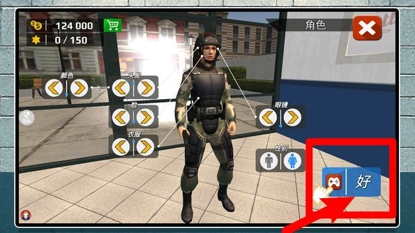 3.角色定制界面:可调整肤色、发型、帽子、眼镜与服装等外观,左右箭头切换款式,确认“好”保存形象,用喜好装备投入战斗。