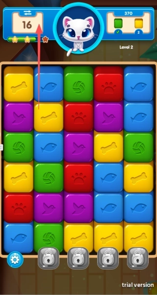 4、留意左上角的剩余步数提示,妥善安排每一步操作,保证在规定步数内达成关卡要求。