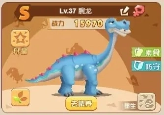 在防御性恐龙的选择上,超级化SS级的矿犷兽相比超进化S级的腕龙优势显著:不仅伤害、生命、防御等基础属性全面领先,整体战力更是达到腕龙的两倍。矿犷兽的被动技能设计更具持续性——只要存活就能持续输出,且自身血量越低,对方造成的伤害就越弱,意味着被动效果可多次触发;而腕龙的被动技能仅在死亡时生效,相当于只能触发一次。综合来看,矿犷兽在各方面都碾压腕龙,显然是更优选择。