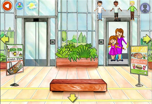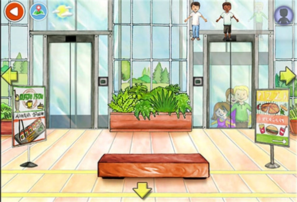 1、第一步是打开娃娃屋plus游戏,进入到电梯口的位置,和现实里的情况相同,点击按钮就能让电梯门打开;