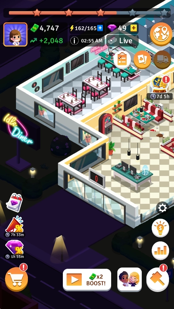 3、游戏即使离线也会自动经营,当你再次上线时就能获取这笔收益,以便继续发展餐厅。