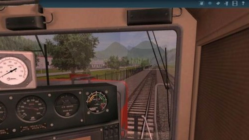 屏幕右下角设有驾驶操控面板,其中最大的旋钮用于控制行驶速度——左侧对应倒车(减速),右侧对应正向行驶(加速)。你既可以通过鼠标点击旋钮来调整速度,也能使用W键或X键分别实现加速和减速。此外,按下S键可关停驱动,此时火车将依靠惯性继续行驶。