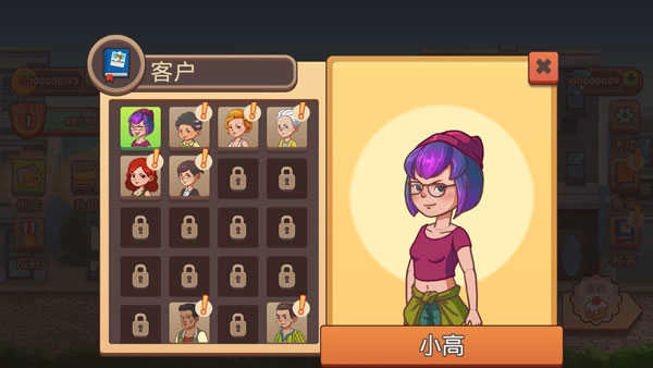 点击主界面上的【顾客】按钮,就能查看已解锁和待解锁的顾客。