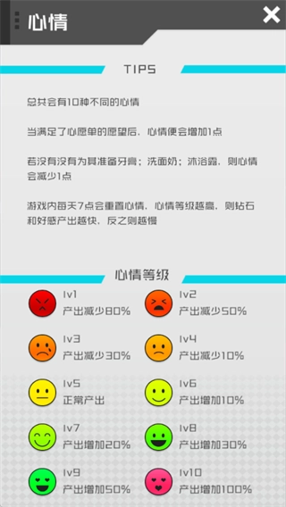心愿满足度:每当完成一项个性化需求(例如“想吃芒果千层”“需要新护发素”),心情就会立即提升1级