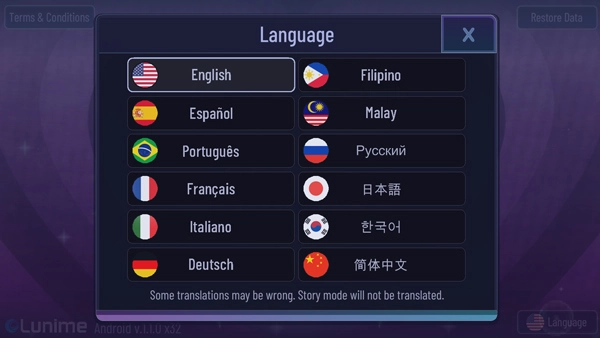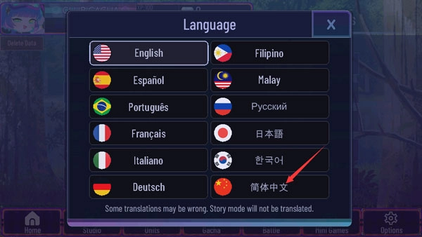 1、在本网站完成安装并启动游戏后,点击右下角的“language”选项;
