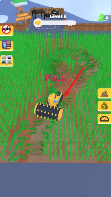 游戏开始后,通过滑动屏幕来操控推土机前进,把场景里的障碍物,像画面中的杂草都清理干净。