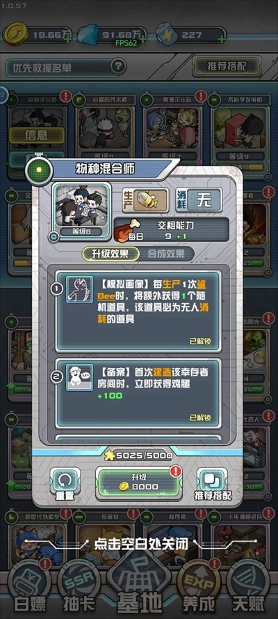 想要快速通关的话,选择第一种方式就对了。核心角色方面,“物种混合师”负责刷取龙蛋;4星品质的“咒术师”通过黑闪合成来完成升阶;还有4星的“乐队”,它的作用是提升基础概率。核心异能则包括:“物以类聚”能让一只祖龙变成两只;“侥幸突破”可将三星祖龙升级为四星;“克隆技术”用于克隆四星祖龙(这里要注意顺序不能乱,得先进行升级操作,之后再开展克隆)。