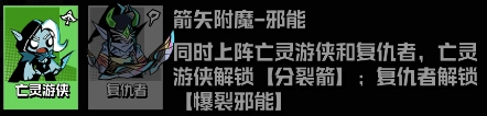 当亡灵游侠与复仇者一同出战时,前者将激活【分裂箭】技能,后者则会解锁【爆裂邪能】技能。