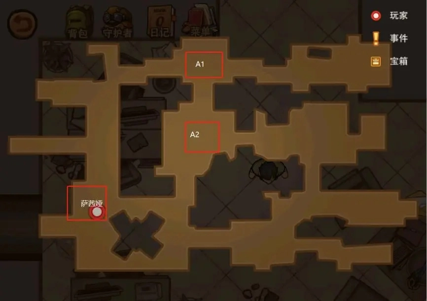 那个标着A1的区域空空如也,没必要过去探索,直接解开电路就能前往下一个场景。宝箱旁的丧尸不用战斗,和它交流就能继续推进。