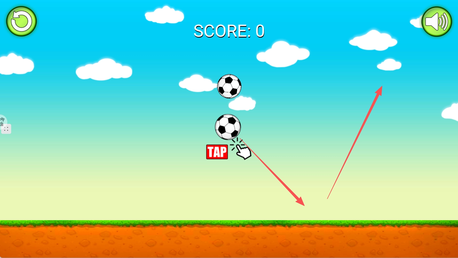 了解这个简单的操作方式:用手指触碰屏幕上的足球,它就会向上飘起;一旦移开手指,足球便会受重力影响下落。要是想让足球一直往上升,那就持续点击屏幕就行。