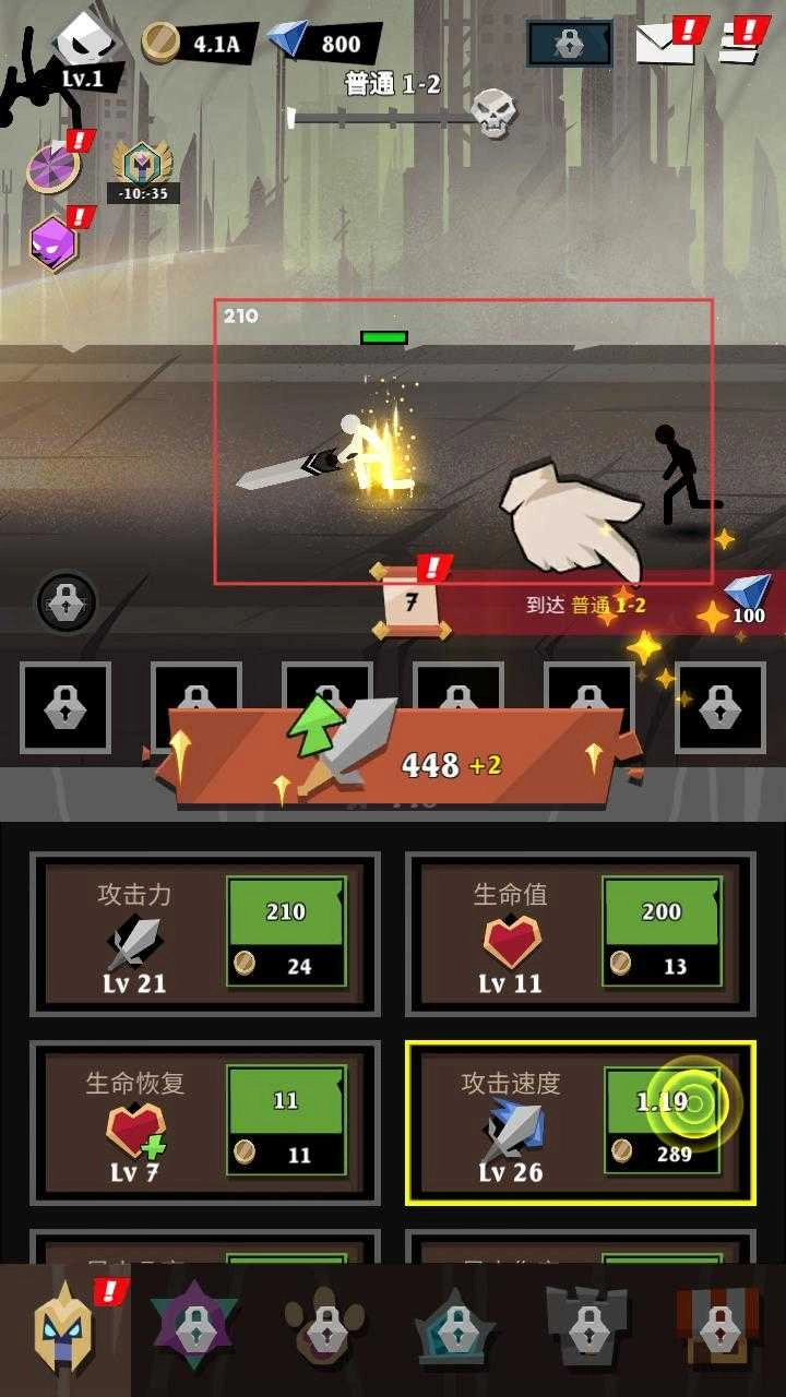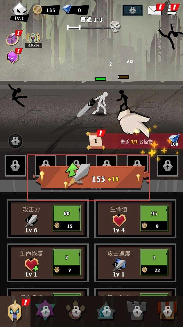 仅需轻点游戏界面里的绿色按钮,就能快速提升角色能力。借助简便的操作,可迅速强化火柴人的战斗力,以应对难度更高的挑战。
