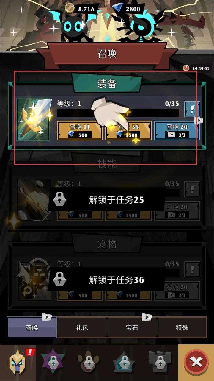 4、你也能够进入召唤界面,耗费对应的资源来召唤装备等物品,给角色配备更为强力的装备,帮助角色在战斗中占据更大优势。
