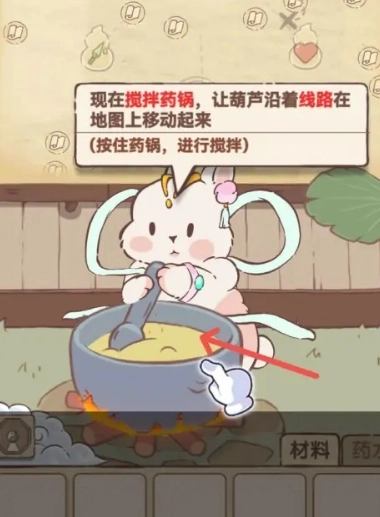 按照指示搅拌药锅,长按药锅即可进行搅拌。