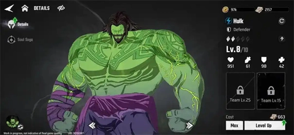 以“绿巨人”为例。游戏保留了他最具辨识度的绿色皮肤与魁梧身形,同时为他增添了纹身、长发和胡须的细节。不熟悉他的玩家依然能一眼认出这是绿巨人,而老粉丝则从中看到了超级英雄身份之外的特质——一个历经沧桑的战士形象,让角色塑造更显新颖与生动。