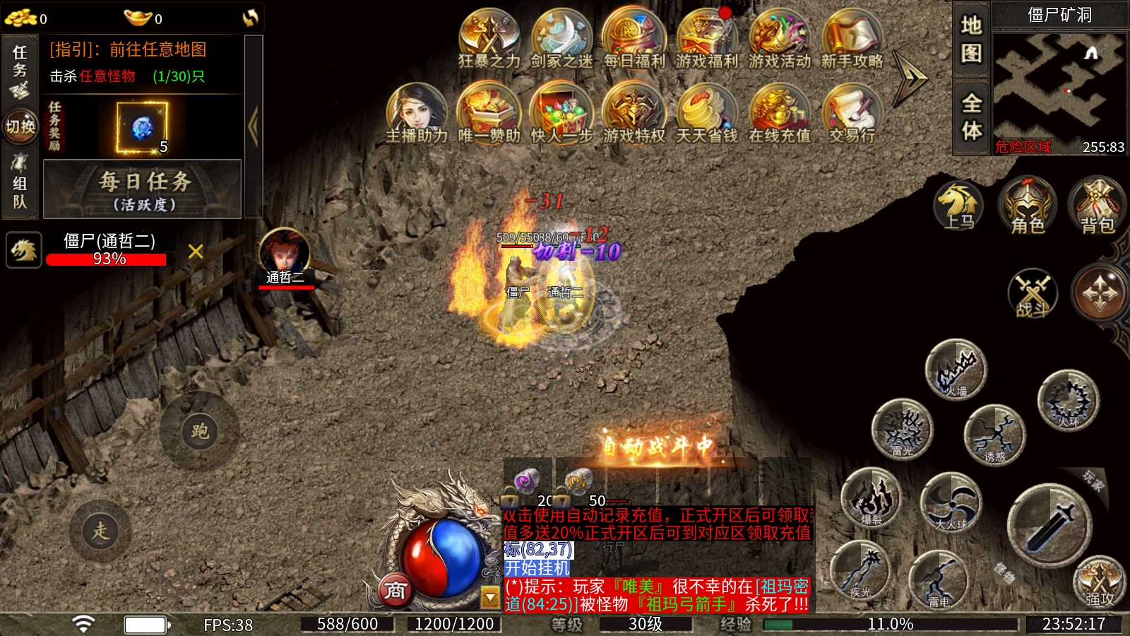 新手玩家可以在普通地图里击杀绿怪、粉怪、紫怪和黄怪,以此来获取前期需要的装备与材料。