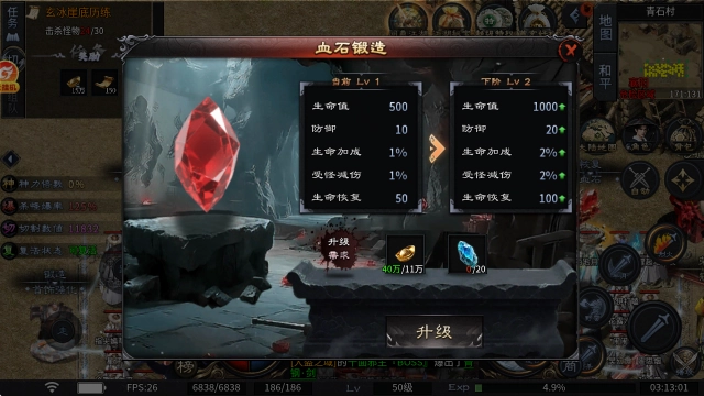 血石锻造玩法:消耗元宝与寒玉石就能开展锻造操作,每提升一级都能带来丰厚的生命值加成与防御属性增强,为你带来满满的安全感。