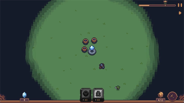 游戏正式开始后,位于中间的建筑会自动生成水晶,玩家能够消耗这些水晶来建造各式各样的建筑与炮塔。