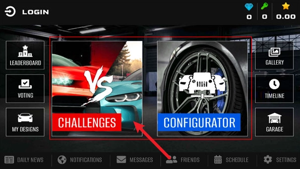 进入游戏后,我们点击主界面的“challenge”选项开始挑战。