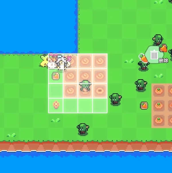 5、假定我们需把农作物移至图里的红色大方块区域,那么洒水器应当处在红色小方块区域。