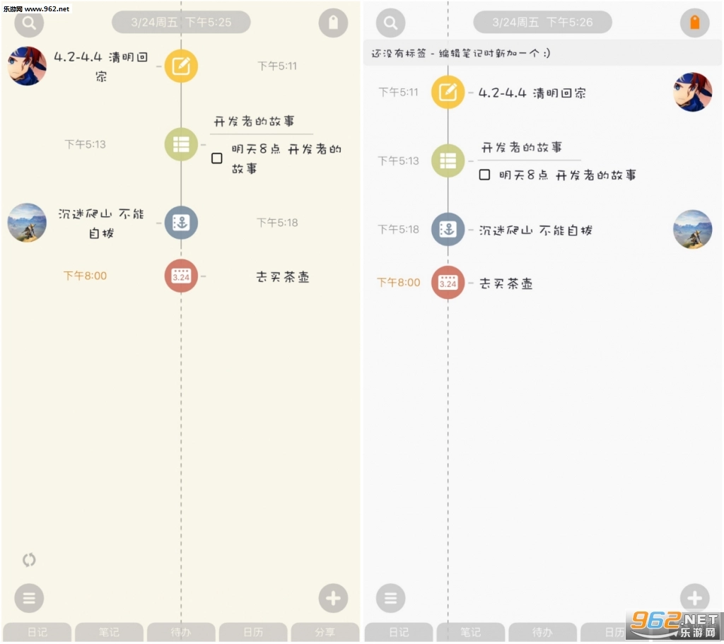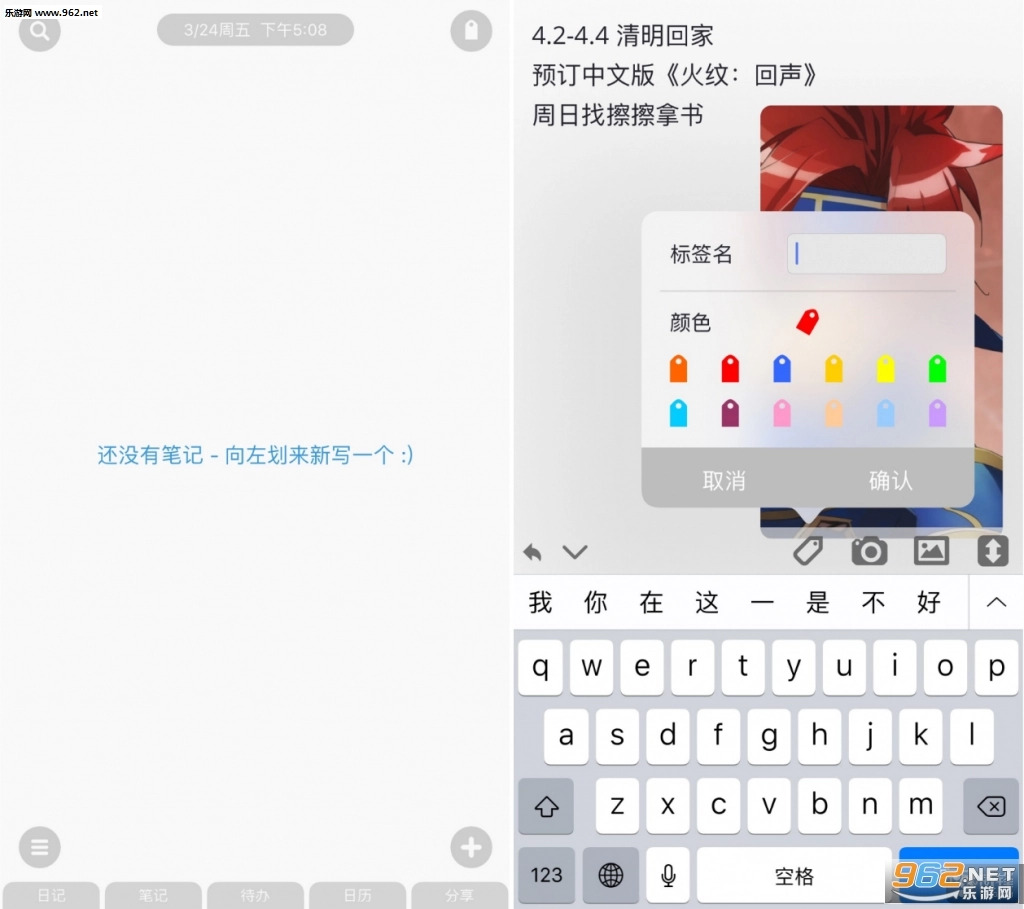化,更贴合用户的日常需求。当然,它的核心优势在于“好用”:简约的设计之下,实用功能一个不落。除了多样化的记事功能外,全面的标签、同步和分享功能大幅提升了它的扩展性——标签支持用户自定义,方便按标签快速查找内容;能实时同步iCloud与原生日历;这些功能背后还融入了高度智能的设计逻辑。