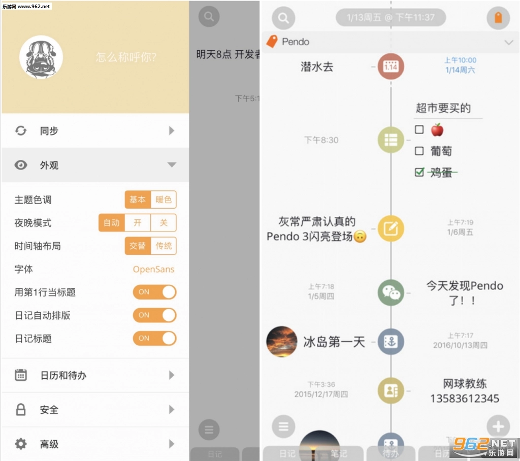 ——你可以用它写日记、列待办清单、添加日程安排,还能随手记录内容并分享到社交平台。和iOS上那些商务感浓厚的专业效率应用不同,《Pendo》的风格更偏向生活