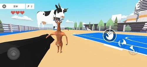 可能有人会好奇,奶牛要去哪里找呢?别着急,整个地图里总共有三只奶牛。复活的时候,如果看到远处那只体型最大的牛,朝着它的方向跑过去,就能看到一个篮球场,里面有两只奶牛在玩耍,随便抓一只带走就行。篮球场附近还有一只在外面的奶牛,抓这只来凑数当然也没问题。不过那只最大的奶牛我们是抬不动的,所以就不用尝试去搬运它啦。