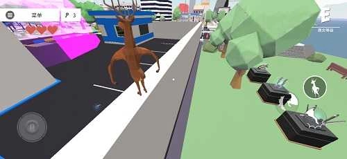 《非常普通的鹿2:未来都市》 这是一款高自由度的沙雕搞怪冒险游戏,以鹿作为主角,采用可爱有趣的3D动画风格,结合搞怪的游戏场景与轻松欢快的背景音乐,力求为玩家带来耳目一新的休闲模拟体验。在游戏中,玩家将化身为一只萌萌的大鹿:通过左侧虚拟摇杆控制移动,右侧按钮则可触发各种破坏行为——它甚至能像人类一样双脚奔跑;广阔的城市可供自由探索,可破坏的建筑种类也十分丰富。运气不错的话,还能解锁各类武器,而且武器支持叠加使用,完全没有子弹数量限制。不过要注意,游戏里有正义的警察四处巡逻追捕你,一旦被抓下场会很惨,所以破坏时得时刻留意周围环境,一不小心就可能玩成“跑酷模式”哦!