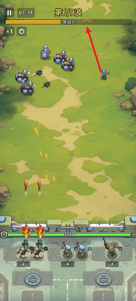 游戏上方显示了需要战胜的敌人波数。
