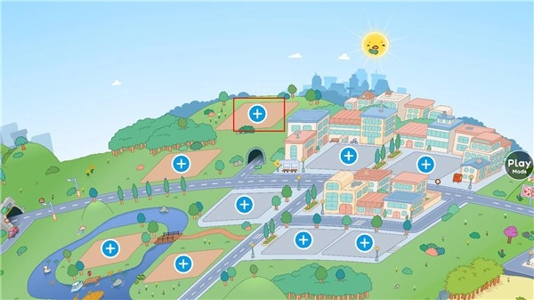 新界面中可看到多处可建区域,任意选择一处加号
