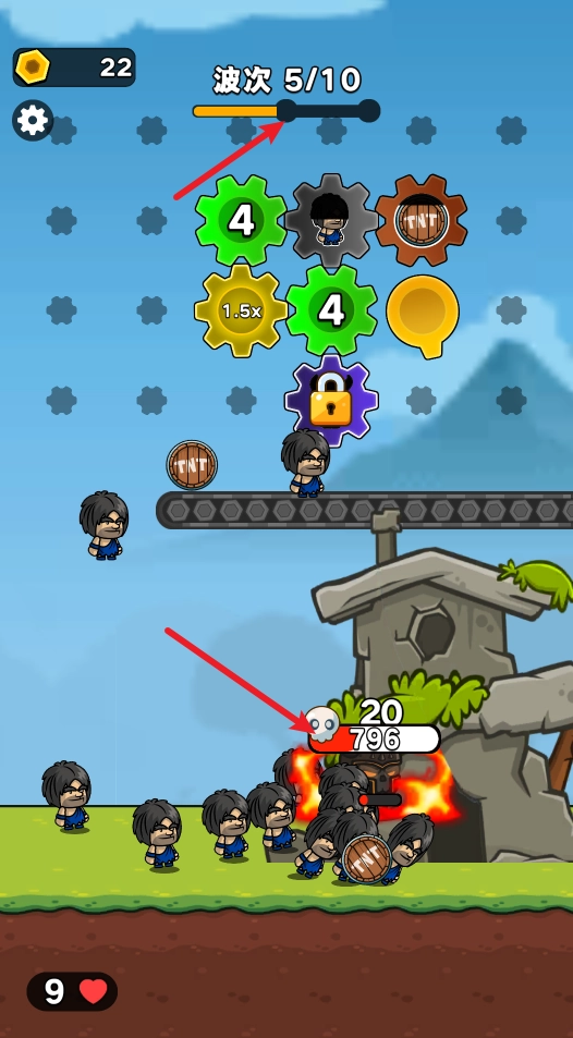在关卡进行到一半以及最后一波敌人出现时,我们都会碰到这类需要摧毁的基地。