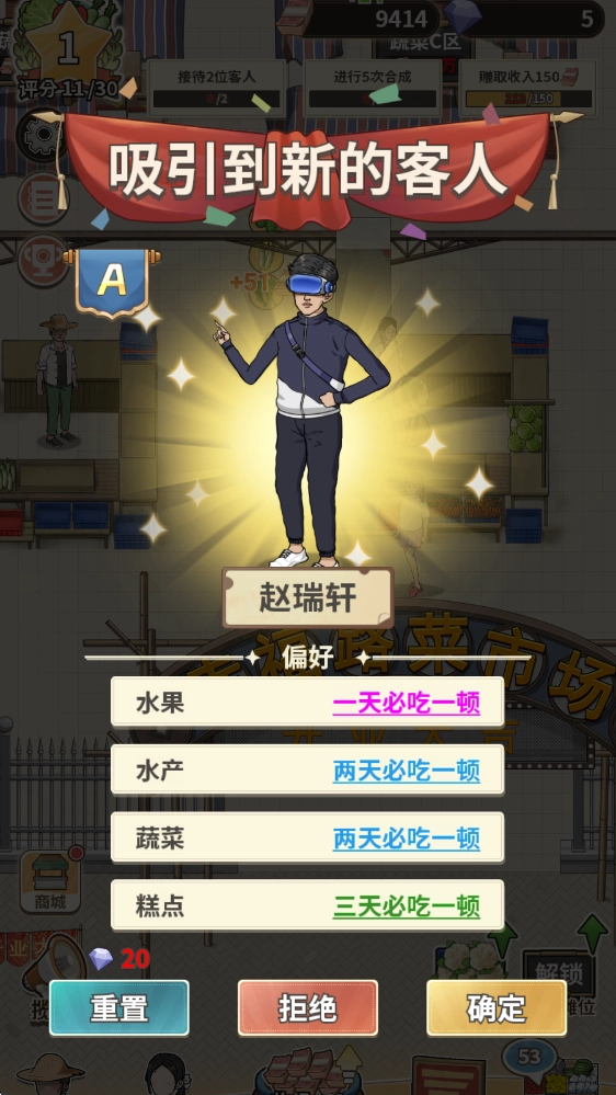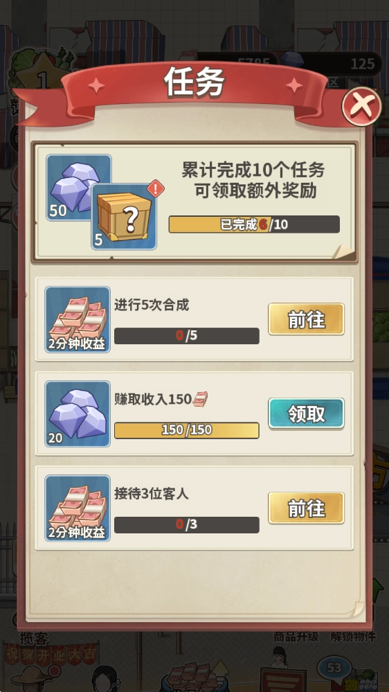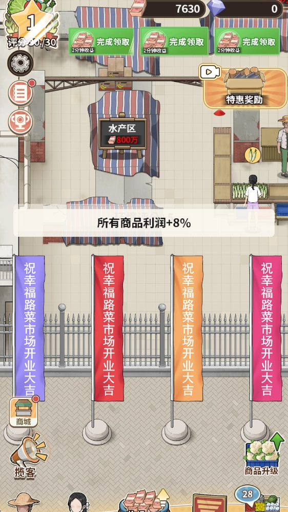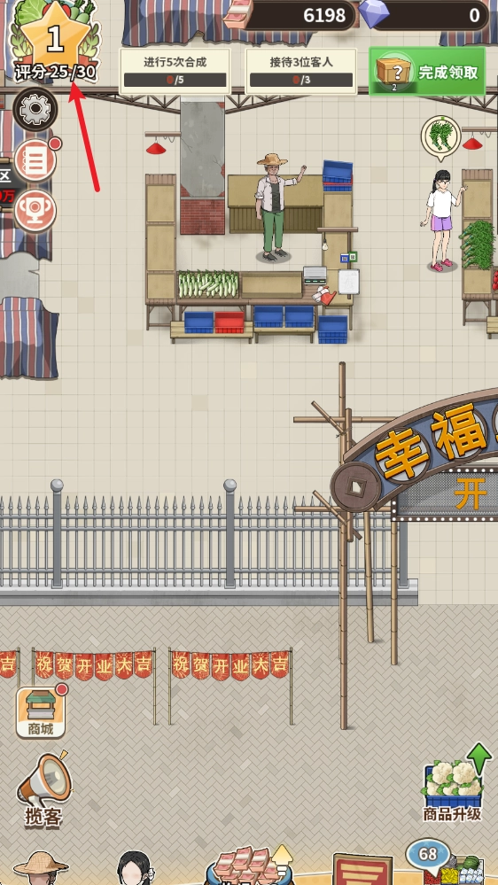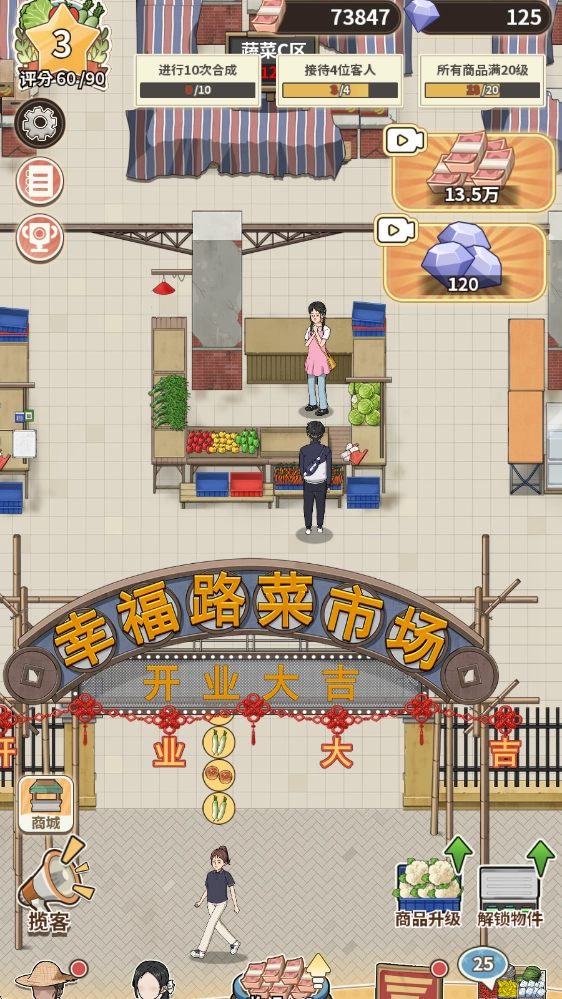 解锁更多商品种类,对这些商品进行升级优化,提升商品的利润空间,以此吸引更多顾客前来消费,进而打响菜市场的知名度。