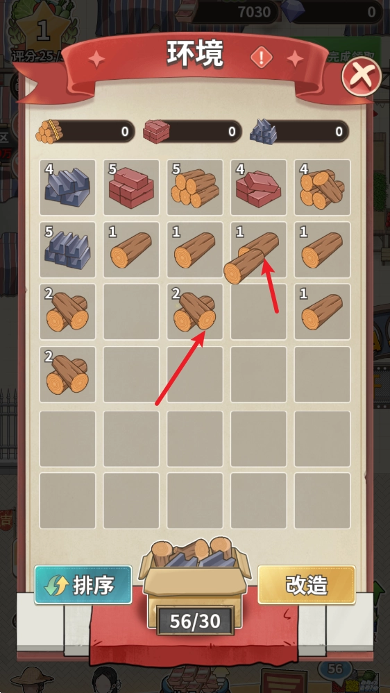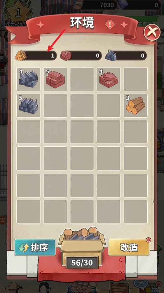 相同等级的建材可以合成升级,获得更高等级的建材,当合成到6级后,就会转化为改造材料。