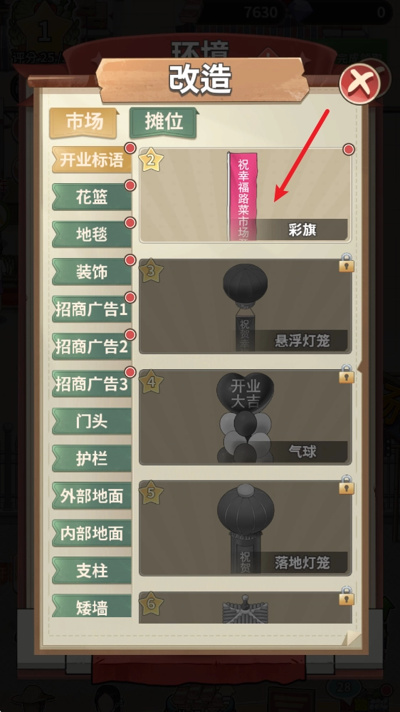 收集各类装修材料,合成装饰,提升菜市场环境,让你的菜市场更加璀璨夺目,帮助你招揽更多客人。