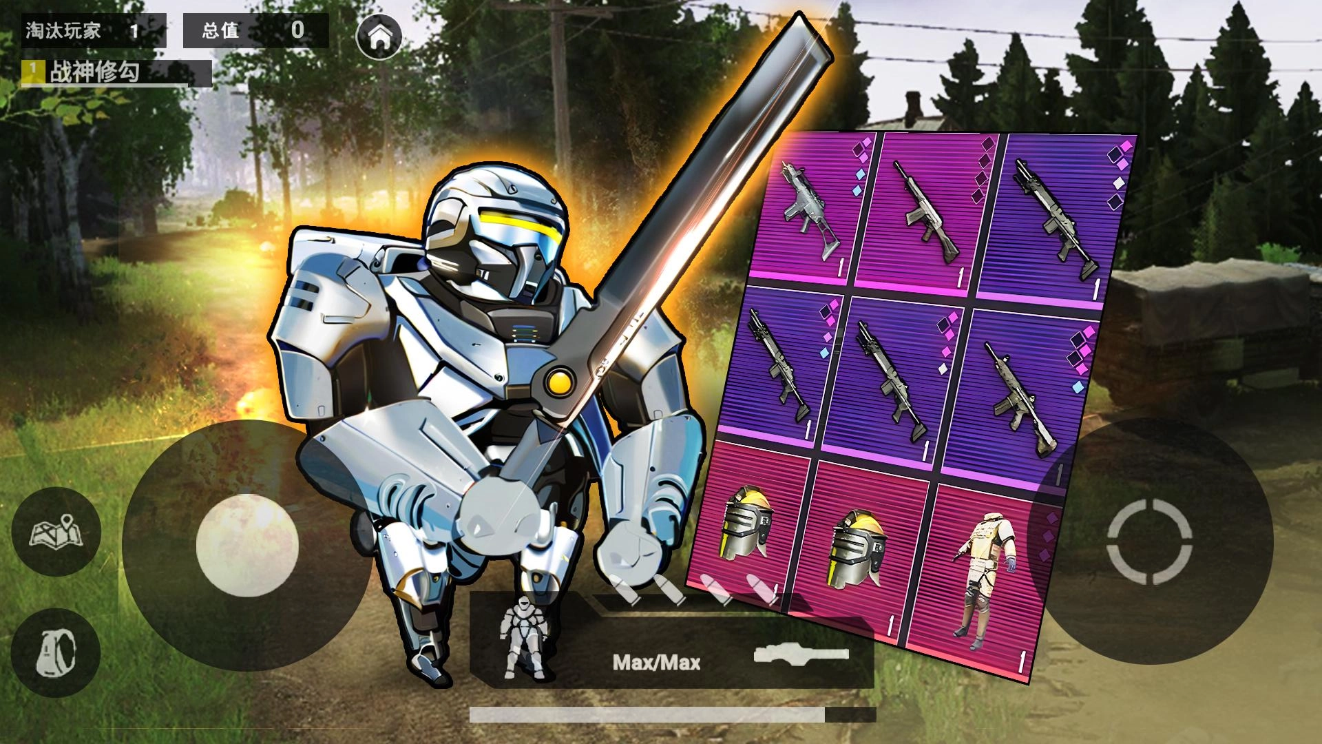 游戏中设有多样的装备系统,玩家能在战斗场景里获取不同类型的装备。其中,1级防弹衣具备基础的防护功能,AKM自动步枪这类武器则可用来对敌人发起攻击。