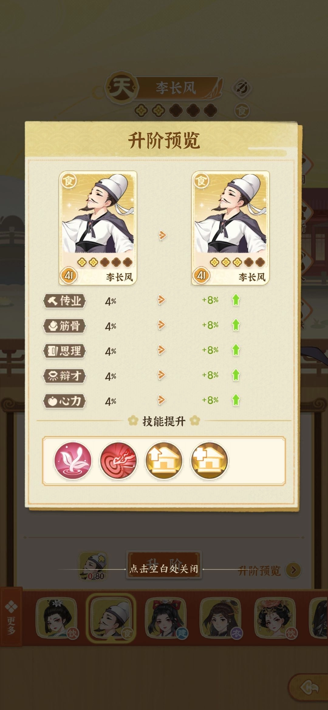 特殊技能方面,基本上每位名士的特殊技能都各有不同,仅有少部分是相同的(配图展示的是李长风的特殊技能)。