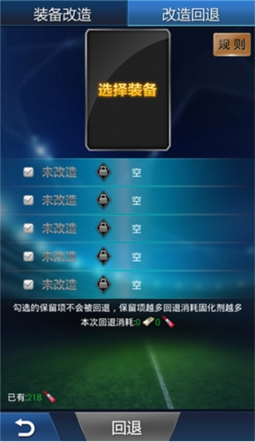 要是对装备改造后的属性不满意,装备可以回退属性加成;如果改造后有一个属性满意、一个不满意,还能保留满意的属性,不过这需要消耗一定数量的固化剂和欧元。