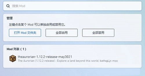 添加完成后,只要MOD文件没有问题,pcl2启动器就会自动识别并在MOD列表里显示出来。