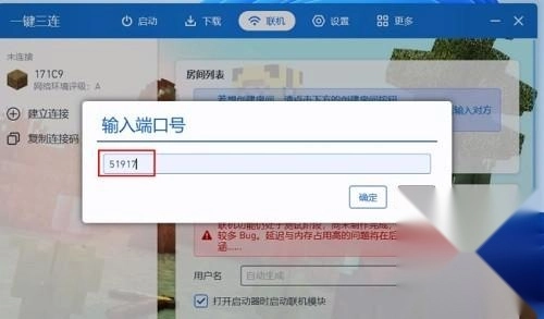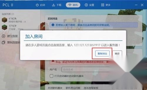 创建完成后,左下角的消息页面会收到一组数字,这便是PCL2启动器的端口号。