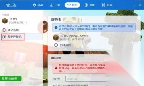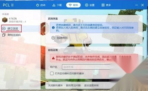 打开PCL2启动器,点击顶部的联机频道,然后点击左侧的【建立连接】按钮。