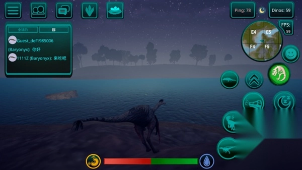 关于食物获取的规则是这样的:要是你的恐龙是掠食性的,那就得通过猎杀其他玩家的恐龙来获取肉食;而如果是食草恐龙,找食物会简单些,你只需要找到特定的蕨类植物,就能获取充足的食物了。另外,地图上所有的湖泊和水库都能用来饮水。