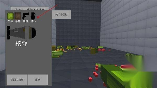 点击炸药后,在这个位置能够选择核弹,核弹同样会自动掉落并出现。