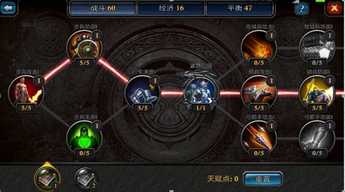 在《阿瓦隆之王》的游戏进程里,平衡天赋的加点至关重要。它能在发育阶段为各类建筑属性带来增益,像医院容量的扩充、部队训练速度的加快,以及其他诸多方面的提升都离不开它。建议把平衡天赋的点数全部加到后面的节点上。相比之下,战斗天赋的加成机制会稍复杂些。另外要提醒大家的是,别忘记合理运用天赋技能,例如“立即生产”可以让你瞬间从城内农田收取五小时的采集量,“三秒回兵”能在敌人攻击时快速补充兵力,这些技能都十分实用。