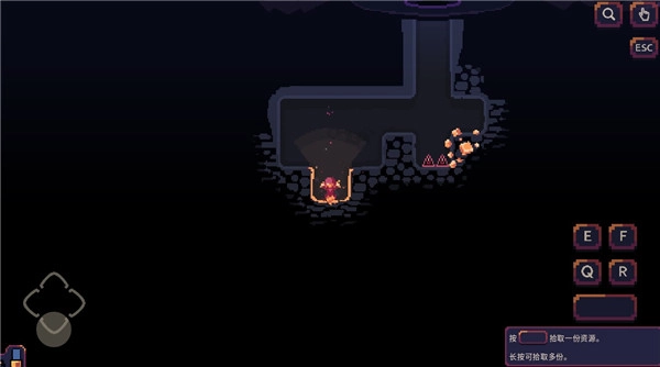 挖到矿石后,点击这个按键就能拾取,接着操控角色把矿石拉上去。需要留意的是,你拉的矿石数量越多,角色的移动速度就会越慢。