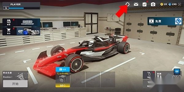 并安装F1移动赛车应用,在完成基础教程后,点击界面右上角的设置按钮。