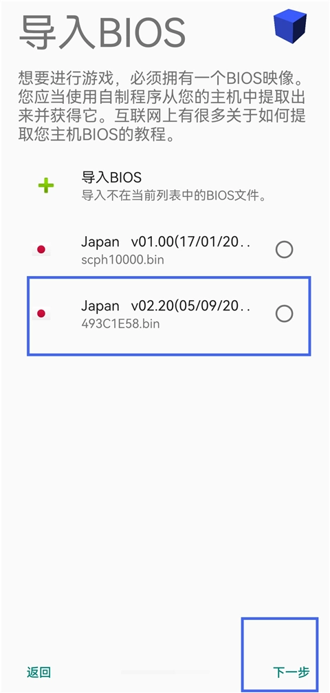 选择刚才导入的bios文件,点击【下一步】。