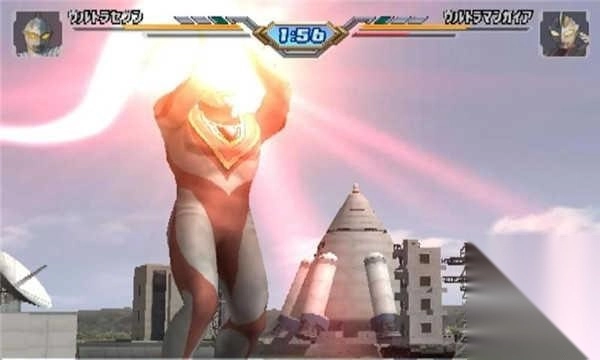 最关键的时刻到了:一旦出现光线对拼的情况,就把手柄的四个按键一起猛按!(HARD难度下要快速连拍)拼赢之后看着迪迦摆出帅气姿势,这就是胜利!